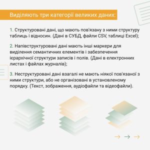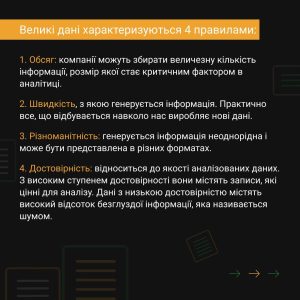 Big Data – область, в якій розглядаються різні способи аналізу і систематичного отримання великих обсягів даних. Вона включає застосування механічних або алгоритмічних процесів отримання оперативної інформації для вирішення складних бізнес-завдань, результатів, які легко сприймаються людиною та є ефективними.