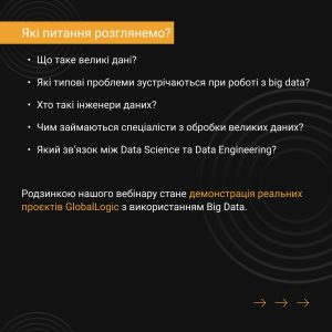 Родзинкою нашого вебінару стане демонстрація реальних проєктів GlobalLogic з використанням Big Data.