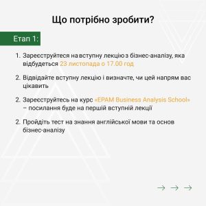 – Зареєструйтесь на курс «EPAM Business Analysis School» – посилання буде на першій вступній лекції.