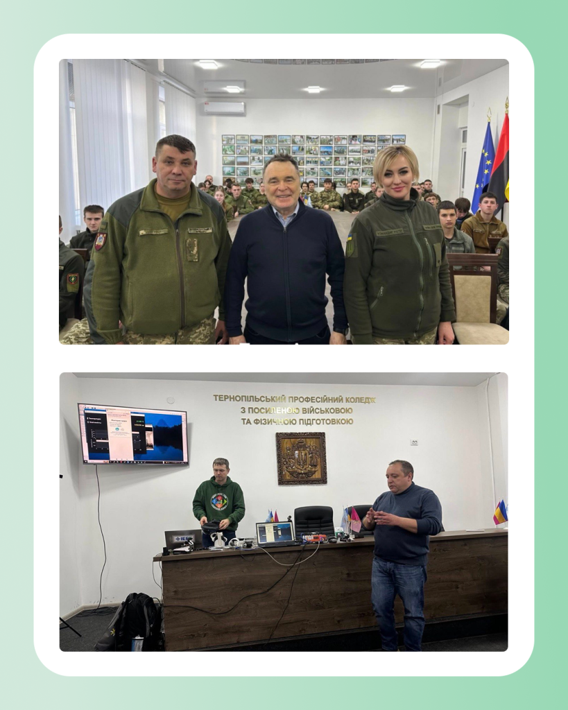 З метою профорієнтації до випускників Тернопільського фахового коледжу з посиленою фізичною підготовкою завітали представники кафедри інформаційно-обчислювальних систем та управління Західноукраїнського національного університету. Під час зустрічі професор Анатолій Саченко, а також доценти Павло Биковий та Олександр Осолінський ознайомили курсантів із можливостями навчання в ЗУНУ, особливостями освітніх програм і перспективами подальшого професійного розвитку у сфері ІТ та комп’ютерних технологій, зокрема з двома спеціальностями: комп’ютерні науки і штучний інтелект.