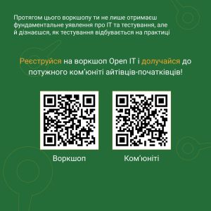 Протягом цього воркшопу ти не лише отримаєш фундаментальне уявлення про ІТ та тестування, але й дізнаєшся, як тестування відбувається на практиці.